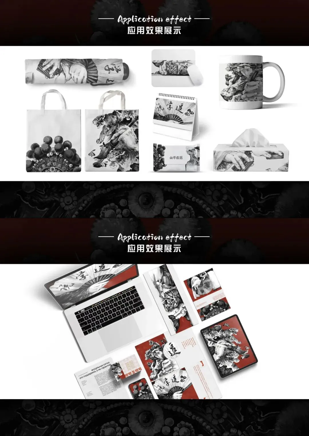 画面以四臂观音唐卡图作为主体,从唐卡的介绍、色彩、内容、制作流程、唐卡的分类、艺术流派与价值七个方面展开。以插画的形式更加直观趣味性地讲述唐卡的制作流程,设计提取了“热贡唐卡”的典型色彩,以西域美学理念的设计方法进行文化创意衍生品设计,实用并且具有装饰性。采用了色彩提取、图案运用,古典与现代的完美结合的方法,使其整体设计风格洋溢着热贡唐卡文化的风情,时尚高贵、华丽实用,在传承和发扬了唐卡文化,真正以中国美学设计手法继承中国传统文化。