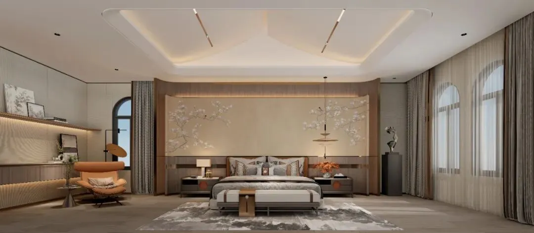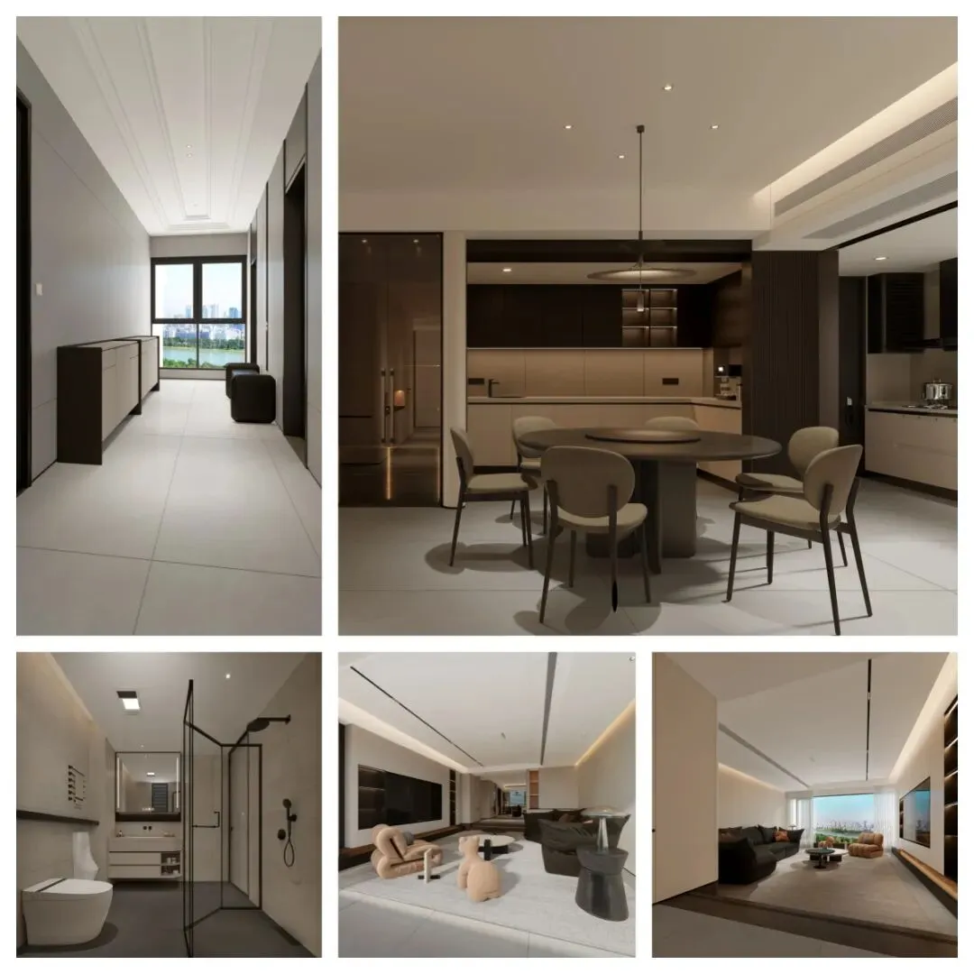没有繁复的装饰堆砌,而是以留白艺术勾勒空间的层次感与韵律感,让东方韵味在光影流转间徐徐铺展。从客厅中线条简约的明式改良家具,到卧室里提花刺绣的新中式床品;从玄关处写意山水的艺术装置,到书房内兼具实用与美感的博古架,每一处细节都诉说着传统与现代的完美对话。在这里,智能科技与人文关怀并行,晨起推窗见景,暮归灯火可亲,我们不仅打造居住空间,更预见有爱的生活之美 —— 让居者在东方雅韵的浸润中,感受家的温度与生活的诗意。