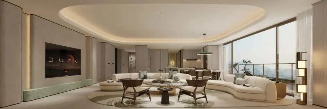 超阔尺度空间,让每一扇窗都成为取景框,将城市天际线纳入视野,白日可览繁华万象,夜幕降临则与璀璨灯火相映成趣。