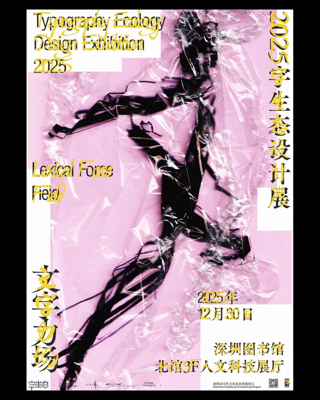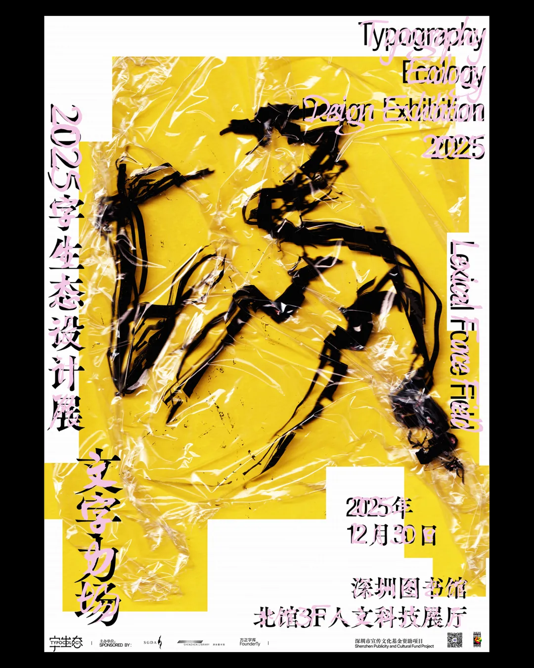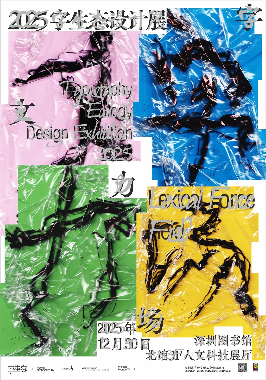2025字生态设计展由深圳市平面设计协会(SGDA)、深圳图书馆与方正字库联合主办,今年的策展主题是“文字力场”。