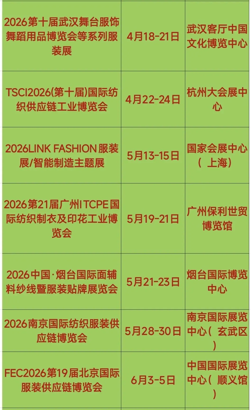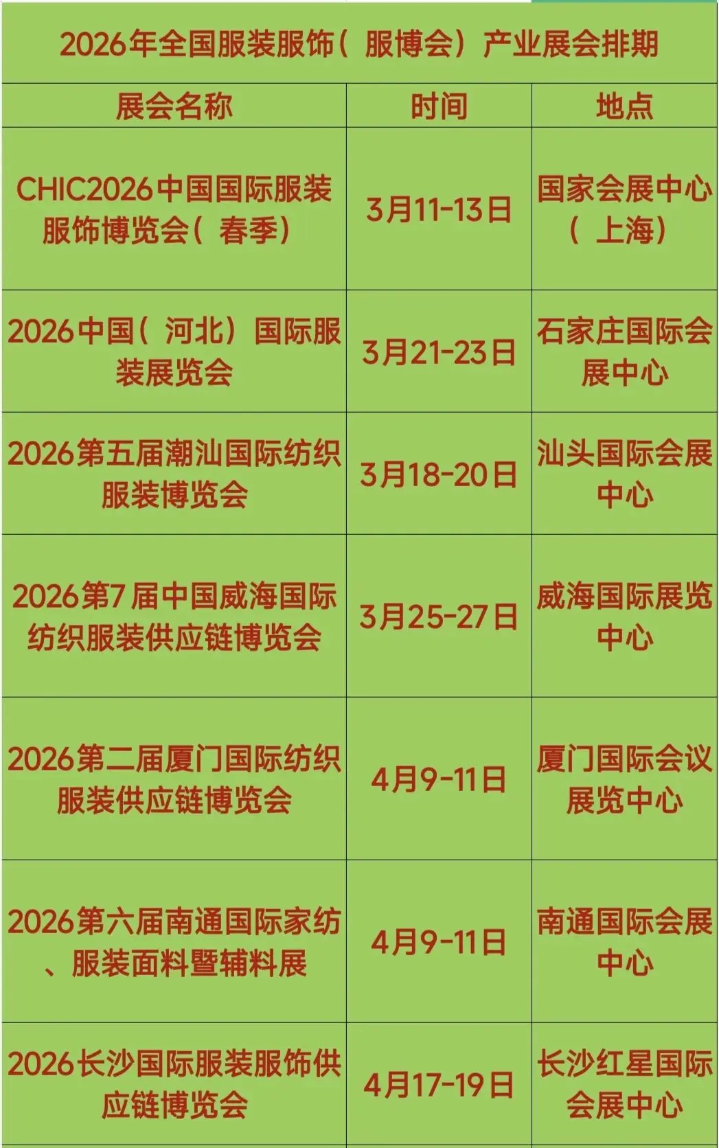 2026年全国服装服饰(服博会)产业展会排期