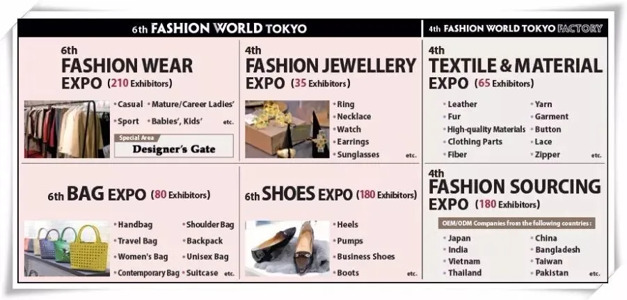 FASHION WORLD TOKYO一年举办两次,包含4个专业展会,为日本最大的时尚综合产业展。3月展将展出AW(秋冬)系列,聚集750家参展商和25,000名专业买家,为时尚界专业人士不可错过的盛会。