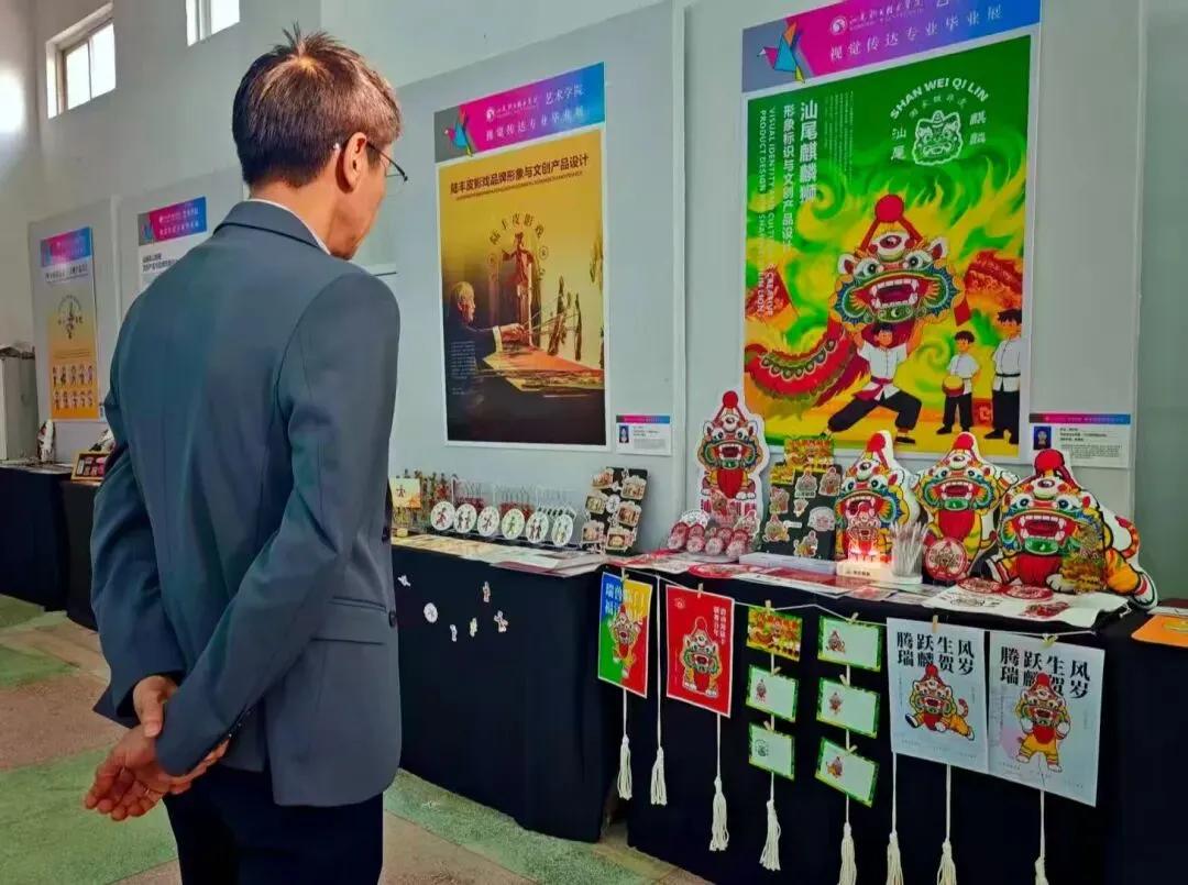 12月22日,汕尾职业技术学院艺术学院2026届艺术设计专业毕业设计展在艺院一楼如期展出 ,本次展出作品以“汕尾特色民俗文化标识形象与文创产品设计”为主题,展现了毕业生围绕地方民俗文化进行的视觉设计与文创实践成果。学院领导与专业师生到场参观交流。