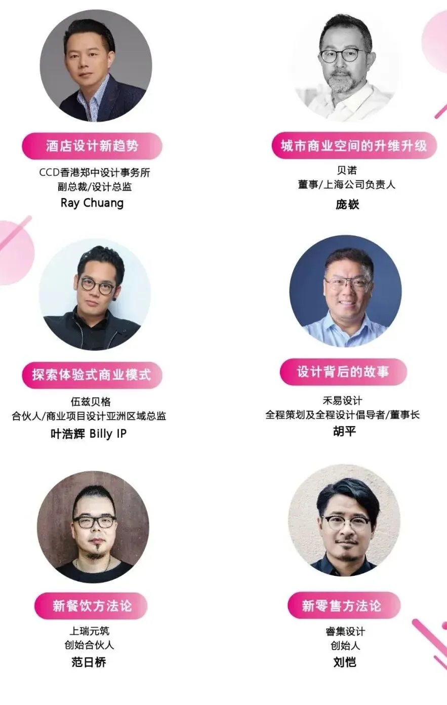 论坛将围绕着“新趋势”、“新场景”、“新物种”、“新变革”这四大行业主题论坛展开,探讨数字时代商业创新设计,邀请了包括CCD香港郑中设计事务所、贝诺、伍兹贝格、禾易设计、上瑞元筑、睿集设计等该领域资深的从业者、知名设计师,为观众“献”上最新体验与行业分享。