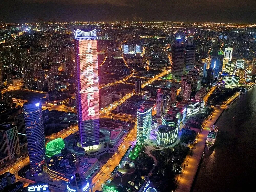 对了,她还有着自己的必杀技:世界最大楼体LED屏&上海最高空中停机坪。每到晚上,整栋上海白玉兰广场的外立面就化身为了LED屏,瞬间中成为魔都夜里最亮的星。