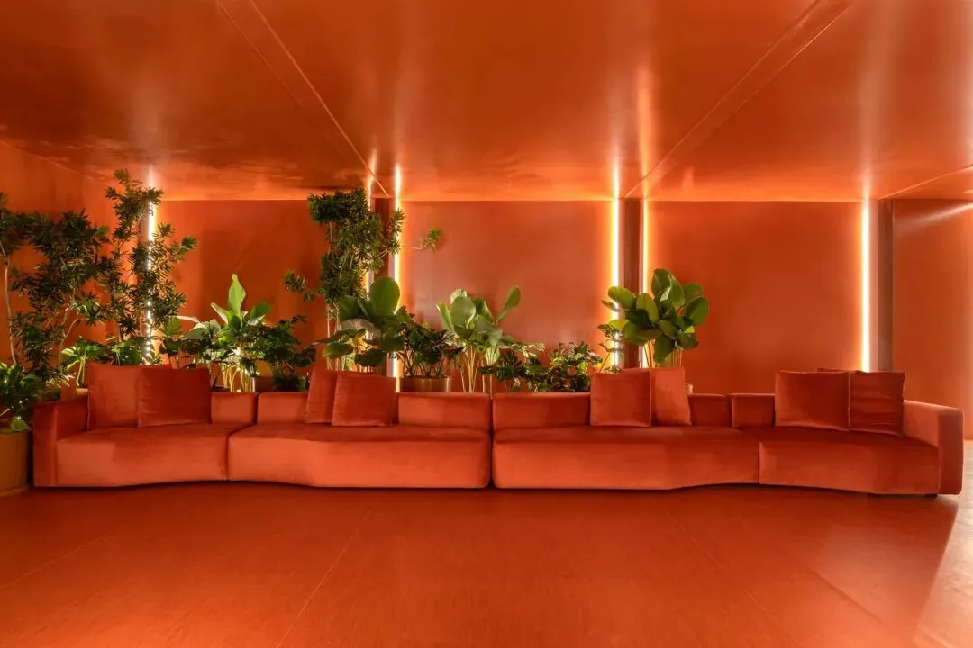 建筑立面上展示有由塑料艺术家阿曼达·比尔德 (Amanda Brasil) 创作的艺术作品。 展厅入口休息区由Riscatto Arquitetura团队负责,设计师通过鲜艳的红色吸引人注意,结合光影,创造出打破传统的视觉效果,向参观者传递热情的情绪。