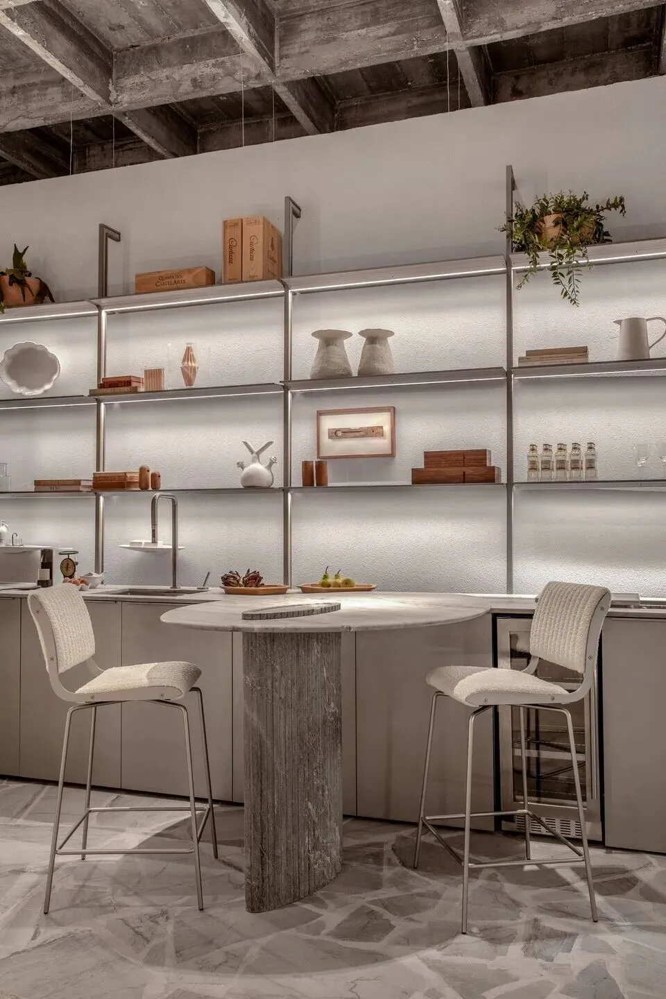 设计师尝试通过多种材质的融合及纹理质感的搭配,证明仍可以创造出一个纯粹的,即包含美学有利于内省的空间。 AR实景探索: https://www.tours-casacor.com/estudio-ostuni-por-gregory-cope llo/ 00:00特色餐厅