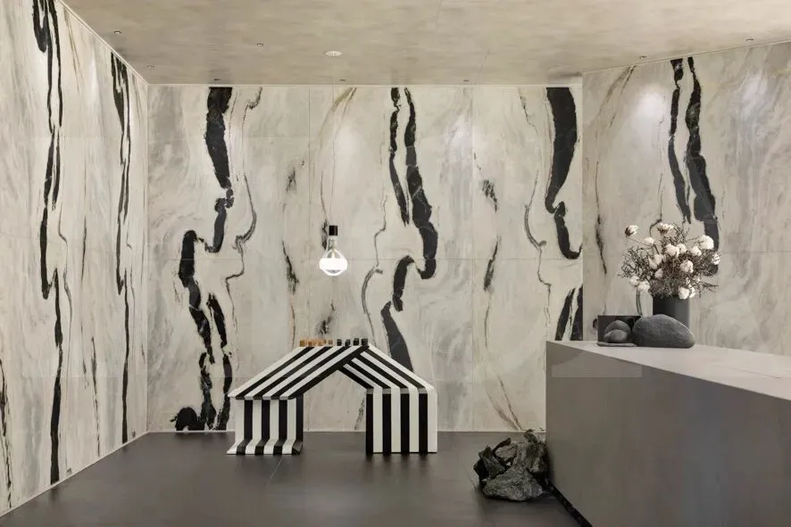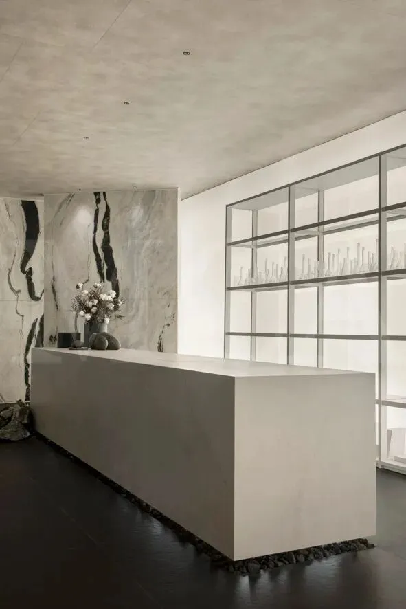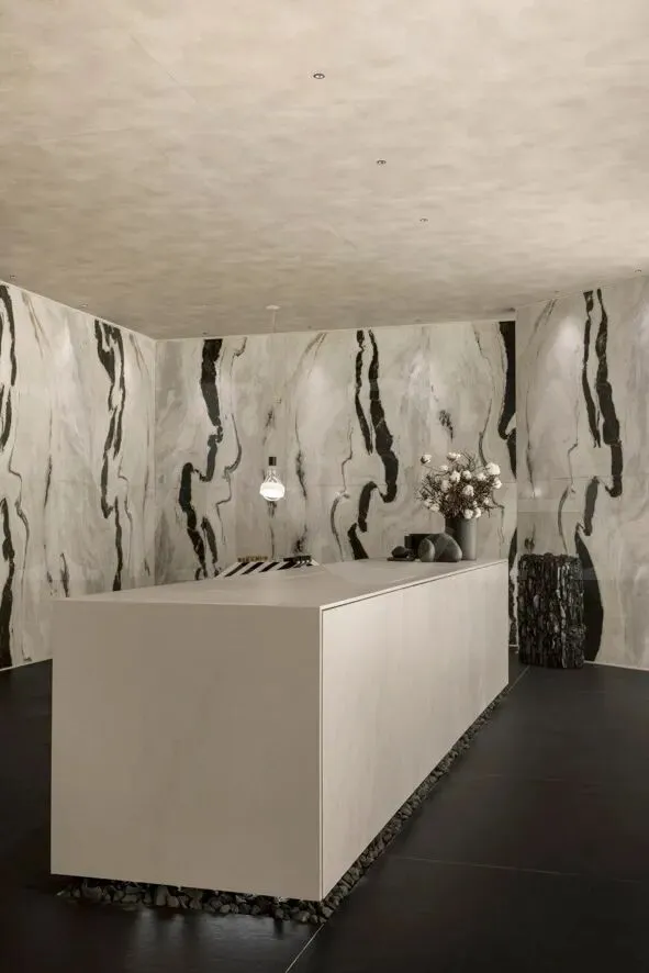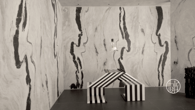 大理石采用的是一种名为熊猫大理石的材质,黑白配色正符合里奥的单色几何空间。