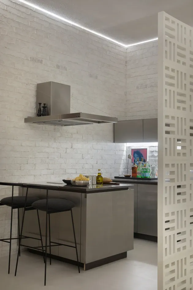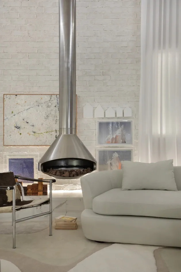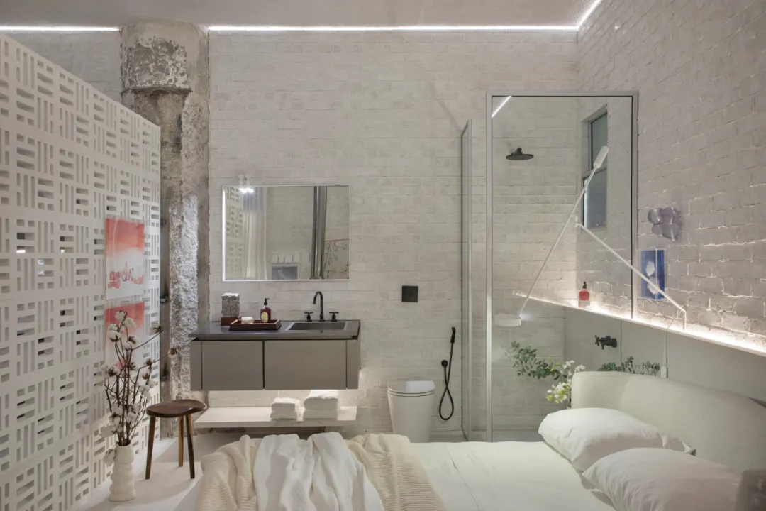 同样的色彩方案也涵盖了套房内的壁炉和浴室墙壁,建筑师使用了 Silestone Faro White 色调。Faro White 代表了地中海的白色,墙壁沐浴在阳光下,象征着纯洁、简单和宁静。