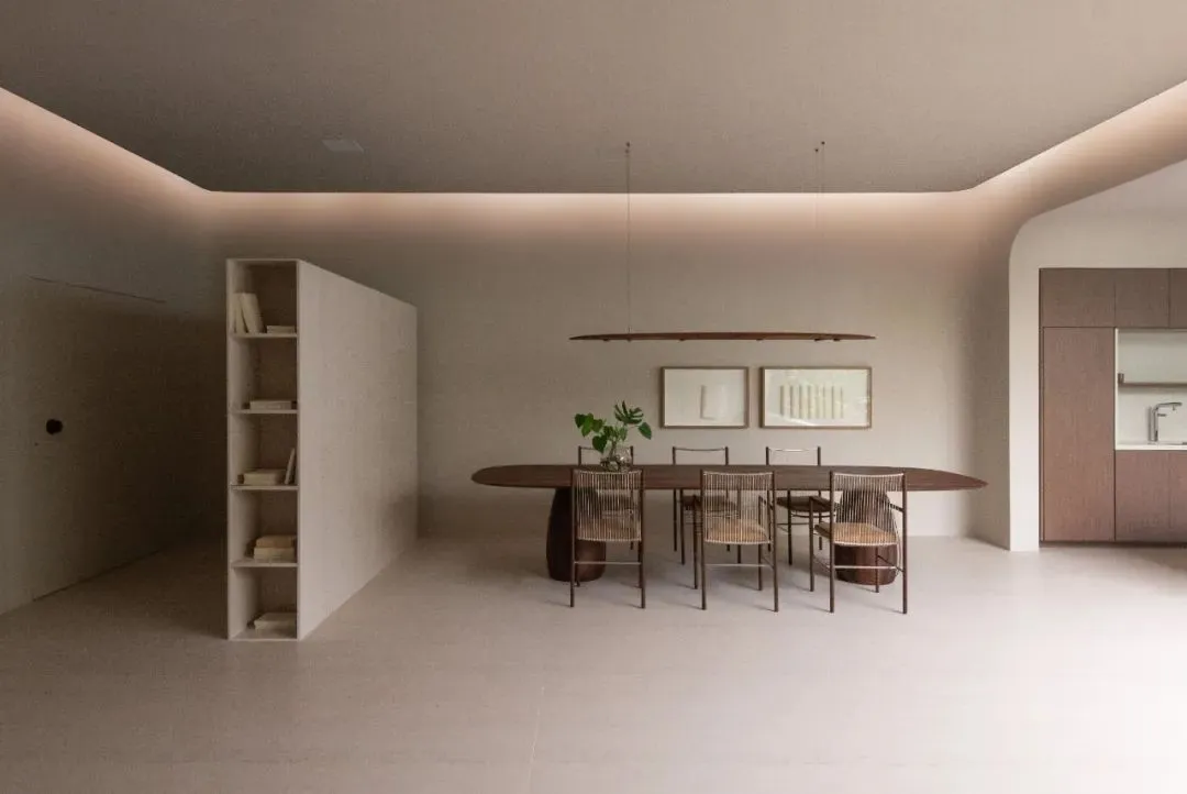 矩形空间的动线模式如同一个深入内部的“茧”,一个拥抱灵魂并带来温暖的地方。层层递进的空间,原始的材料,完美演绎了“开始”这个灵感词。