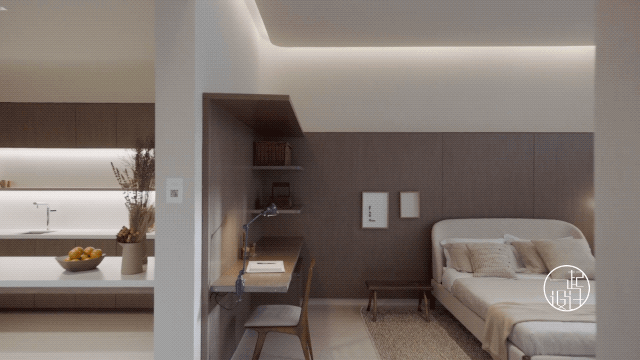 (LA CITTA' BIANCA)的美称。 这间34平米的样板房以白色和米白色为主色调,还原了奥斯图尼的白色之城的景象。