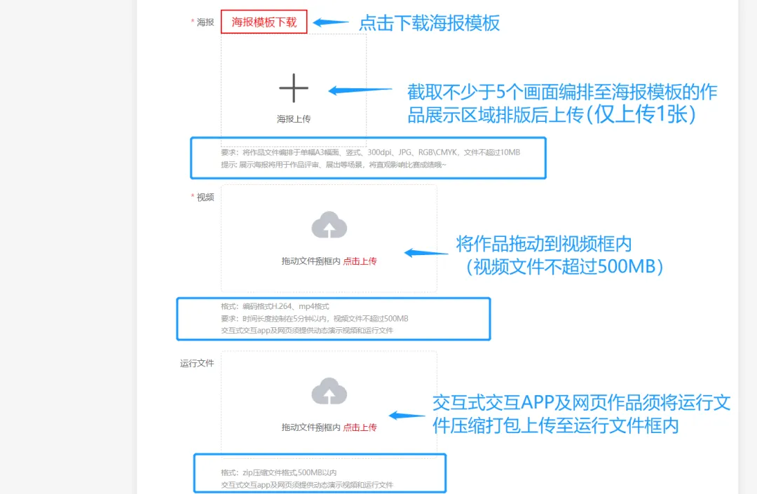 - 如提交【视频类】作品,需将视频文件拖动到视频文件框内。