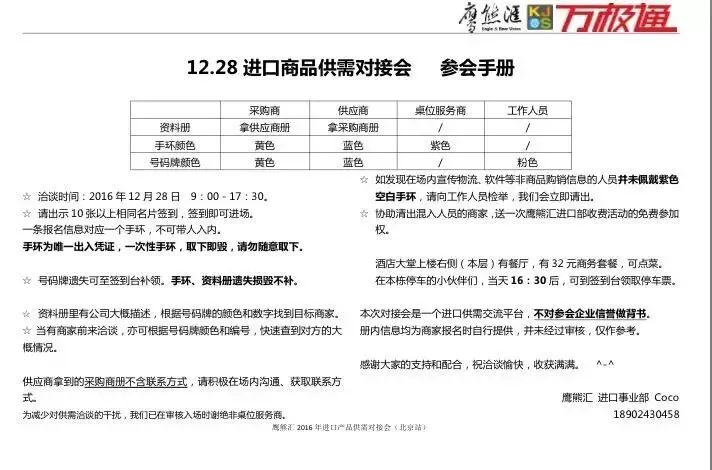 2、进口商品对接会不接待桌位商家以外的服务商。