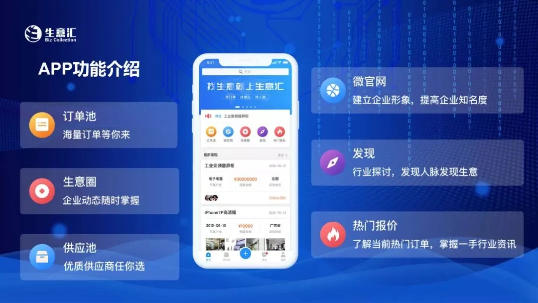 生意汇APP已在各大手机应用平台上架,500万+制造业老板都在这里找订单、找供应商、找资源。并且企业可零技术零成本快速制作属于自己的微官网哦,这样随时就可以上传自己的企业简介和产品到生意汇APP上进行业务宣传和推广,更重要的是,进入生意汇供应商资源库,这样就能在移动端轻松地找生意、接订单,深度链接甲方乙方,实现快速寻源,高效成交。