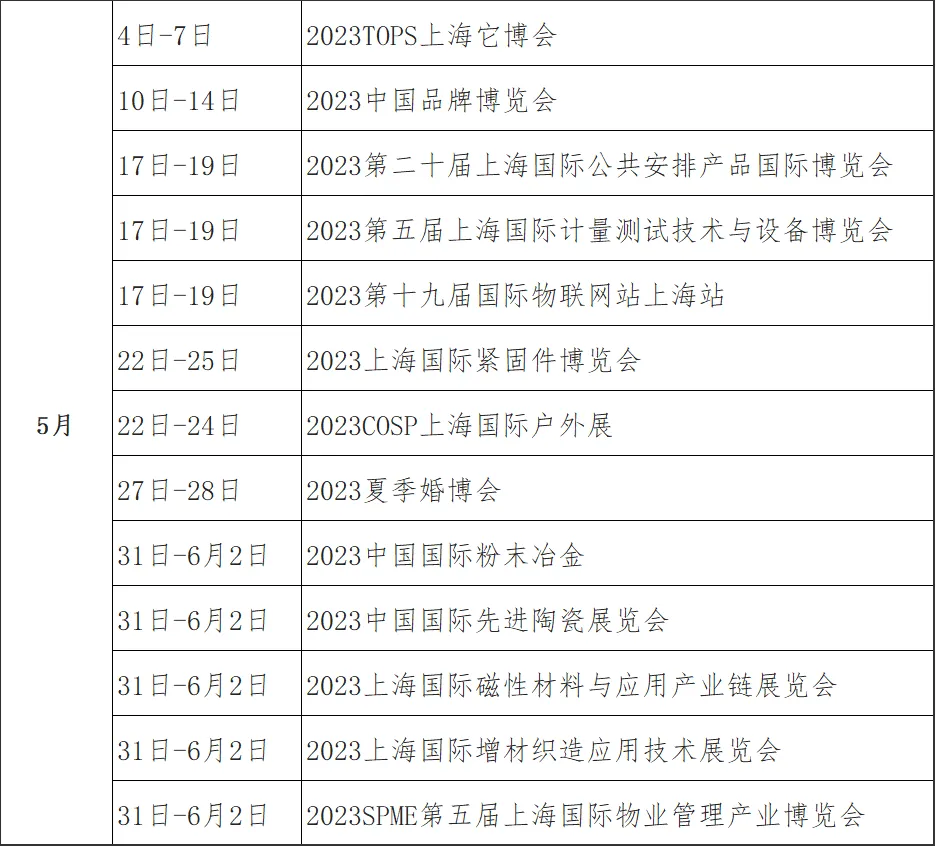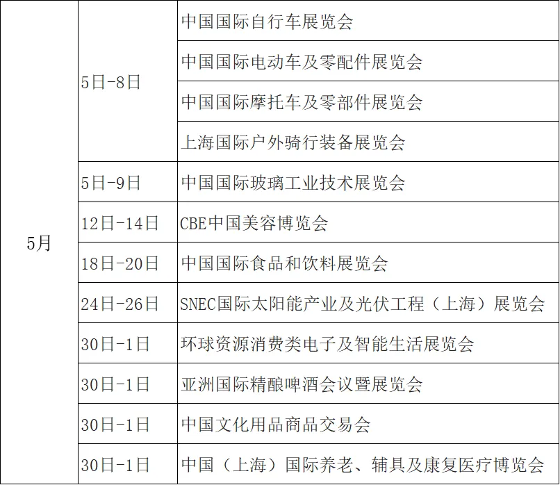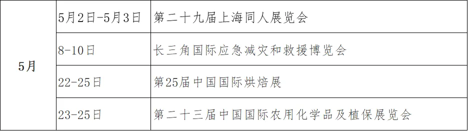 上海5月展会排期来啦