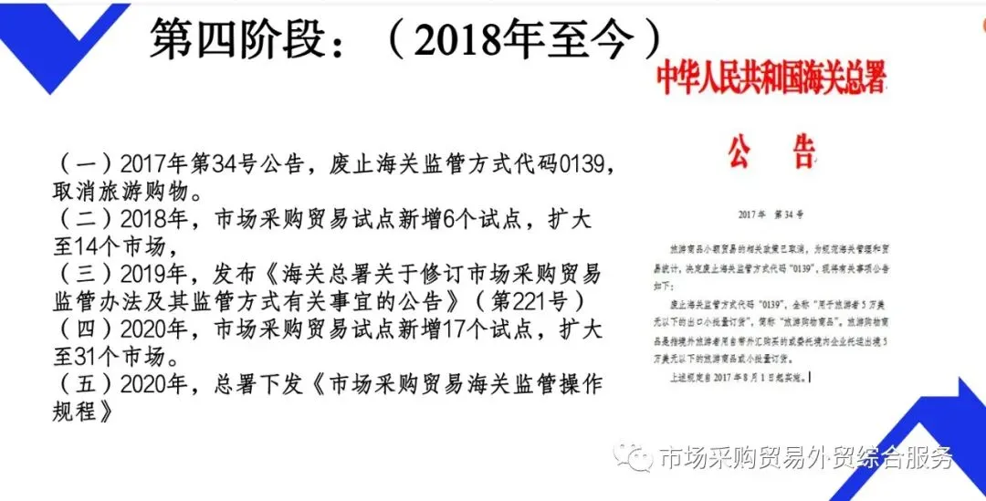 为规范对市场采购贸易的管理,根据《海关总署关于修订市场采购贸易监管办法及其监管方式有关事宜的公告 》(海关总署公告2019年第221号),现将海关监管方式“市场采购”(代码:1039)适用范围扩大到上述市场内采购的出口商品,海关监管相关事宜按照第221号公告规定办理。