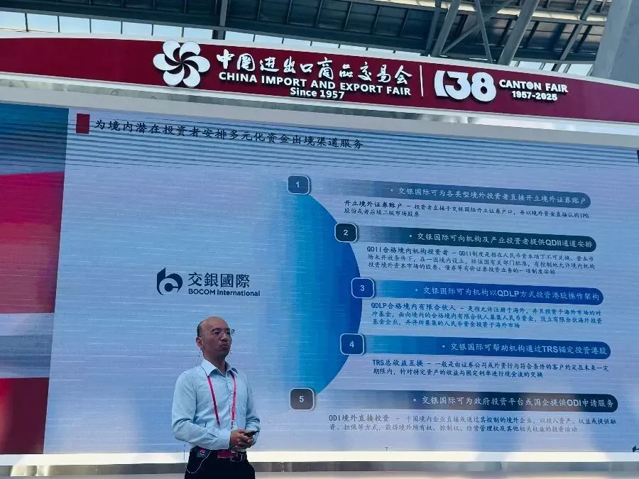 本届广交会开幕当天,交银集团在广交会新品发布活动上推出赴港上市及境外投融资配套服务,为参展企业对接国际资本市场提供专业支持,成为展会中聚焦企业“出海”需求的亮点环节。