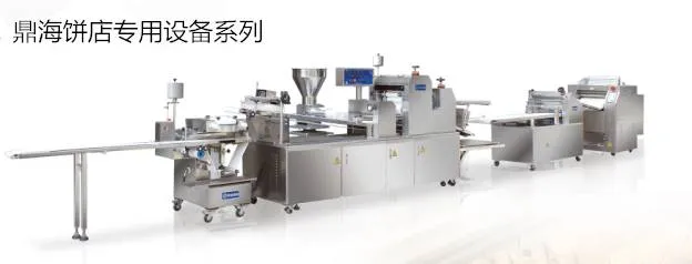 鼎海机械设备有限公司的自动连续压面机、分割面带整型机、面团成型主机、分离式给馅机、分离式捏花机、分离式切台、排盘机;