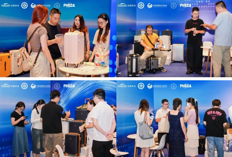 箱包展区集中展出市场化定制拉杆箱,以及电动智能拉杆箱、多功能背包等创新产品。卖家现场查验材质工艺,并就定制需求、起订量与交货周期等与工厂深入沟通,多家企业现场初步达成合作意向。