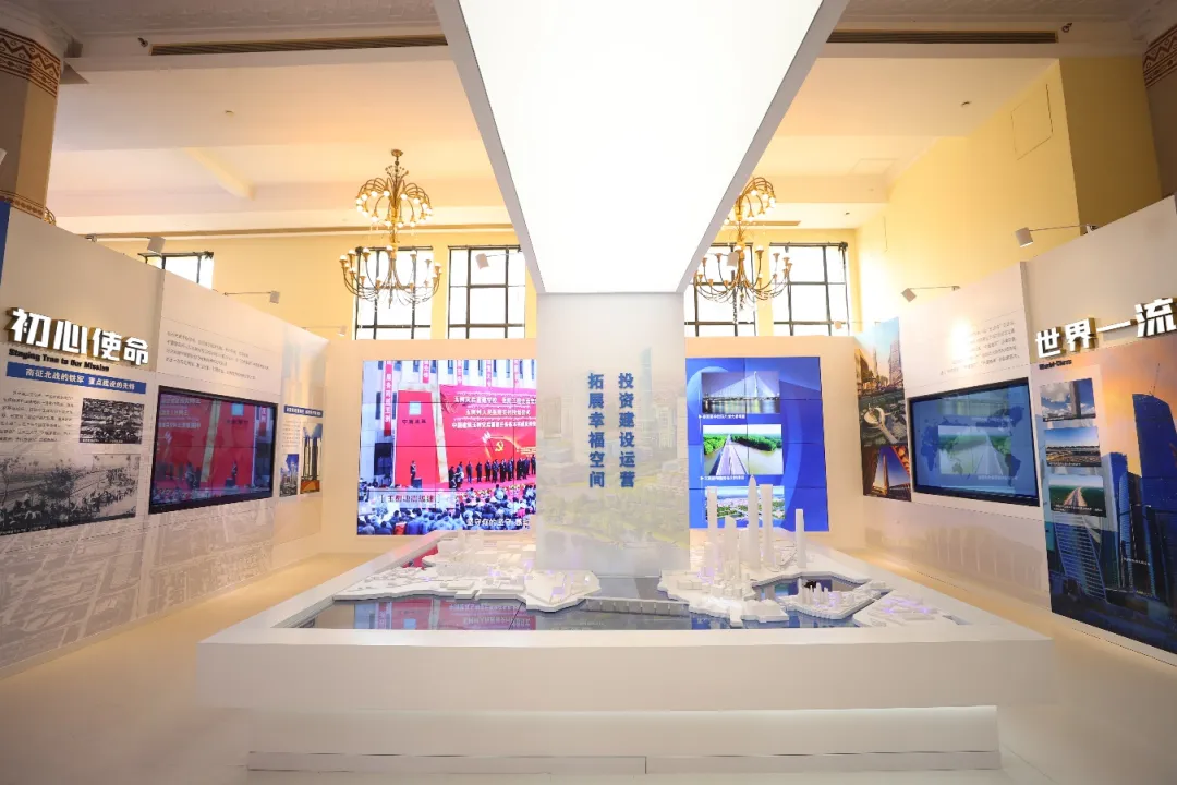 包括由多维信息综合呈现的数字化城市模型沙盘,以及中国建筑品牌形象片。精选中国建筑全产业链、全业态、全球代表性建筑作品,以影像屏幕为载体,搭建起一座由实体建筑模型组合而成的“未来之城”“智慧之城”“幸福之城”。紧密结合投资建设领域特色,突出“可看性、体验性、科技性”,集中展示中国建筑深入贯彻落实习近平总书记“推动高质量发展、创造高品质生活”的重要指示精神,践行企业使命、服务国家战略、勇担改革重任、引领行业发展、打造“具有全球竞争力的世界一流企业”的品牌之路。