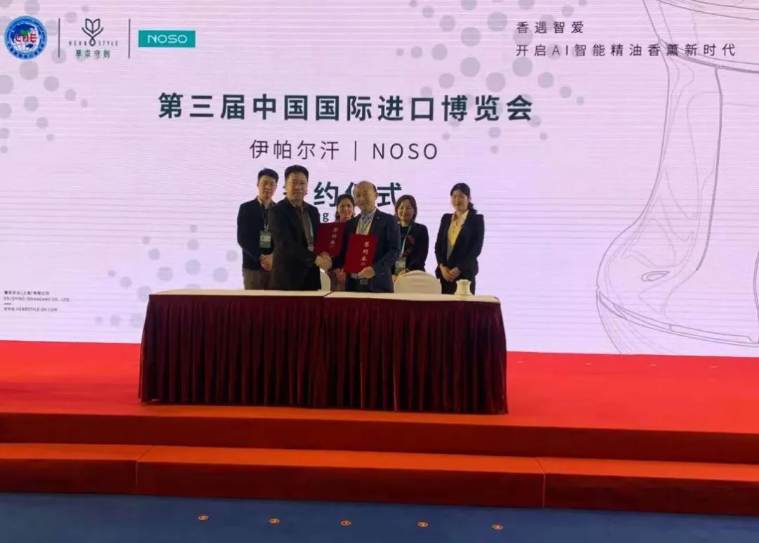 进博会现场,伊帕尔汗拓宽合作层面和领域,汲取业内顶尖企业产品科创、品牌投放及运营经验。11月8日,与上海交易团采购联盟中的上海雅琪实业签署意向协议,就精油原油供给、产品科创、品牌联盟战略、市场运作等方面构建合作外模。同期完成了与美国NOSO中国代理商——耀妆实业的意向签约;伊帕尔汗以国内天然香料旗帜品牌的形象进驻智能美容仪领域,与耀妆公司品牌草本守则×NOSO建立共情,共同打造“一芯片,一世界”的“AI香遇智爱生活”。11月9日,伊帕尔汗与上海欧芳生物科技股份有限公司建立战略合作关系。聘请欧芳董事长、欧洲芳香学会亚太主席李思亭博士为特聘专家,合力钻研精油芳疗技术,拉高原料种植水准,放眼国际精油市场,打造国货精品,塑造四师可克达拉市三产融合的靓丽名片。
