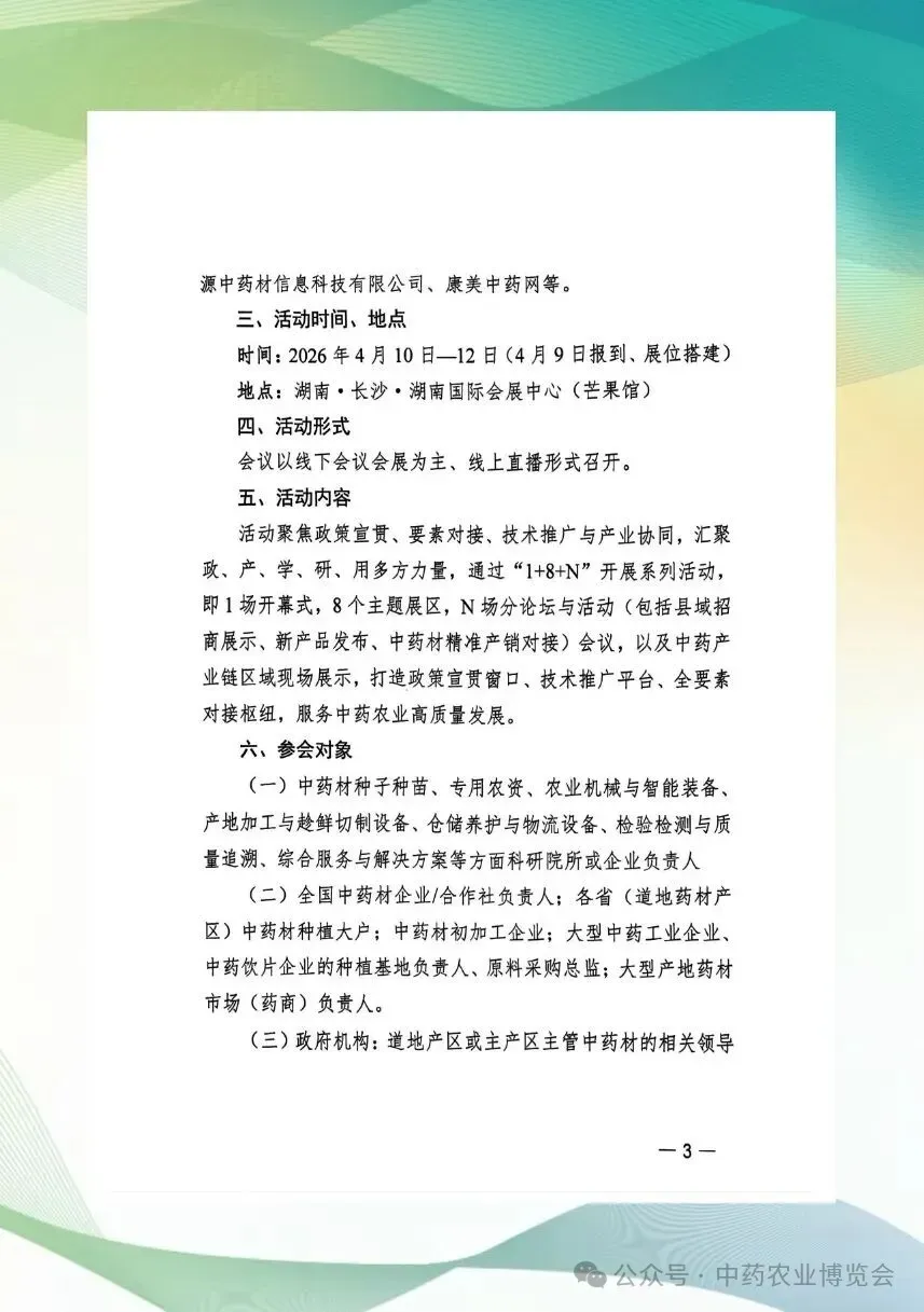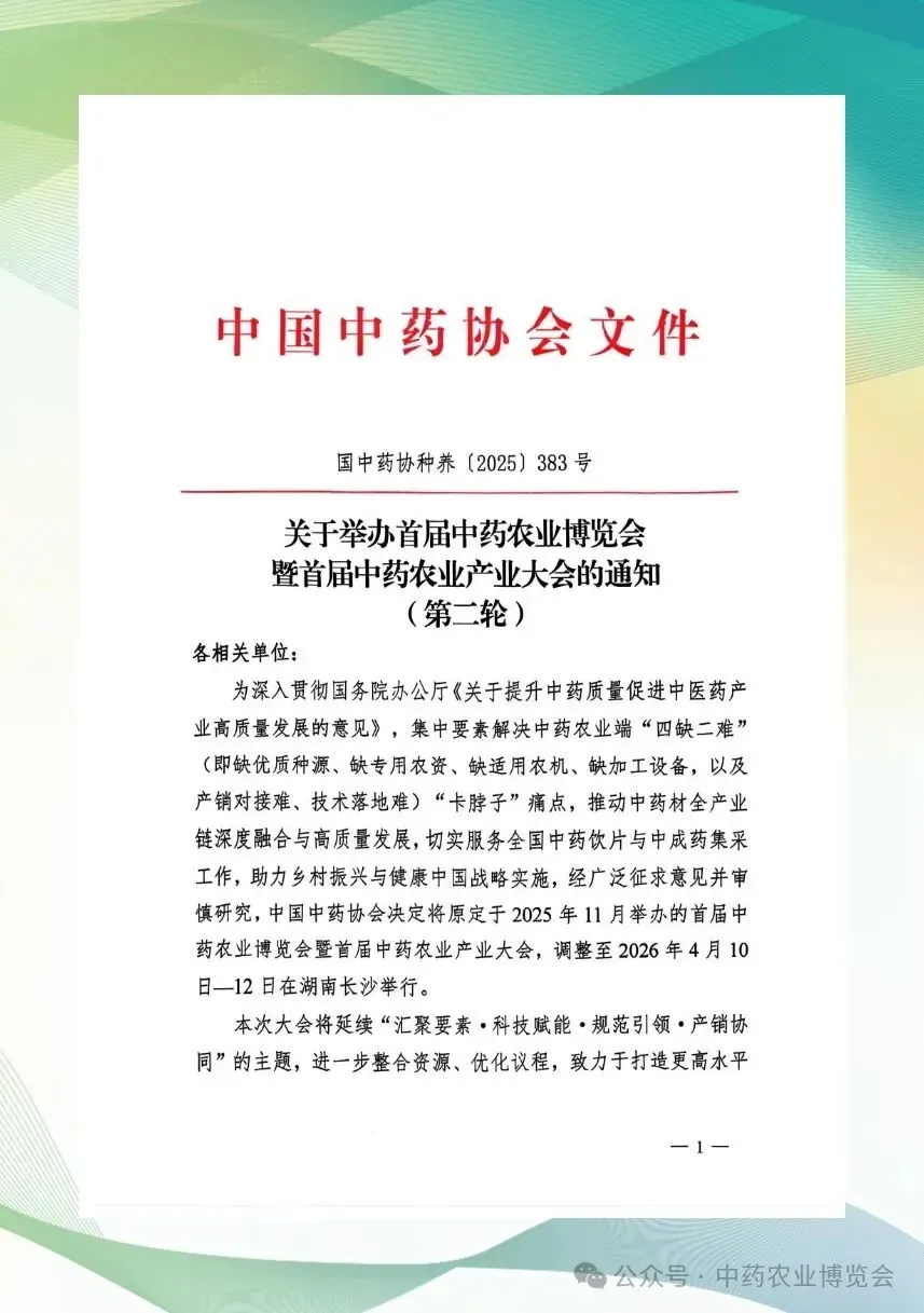 【行业盛会】首届中药农业博览会将于2026年4月10日—12日在长沙举办