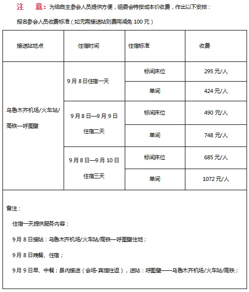 为给自主参会人员提供方便,组委会特按成本价收费,作出以下安排