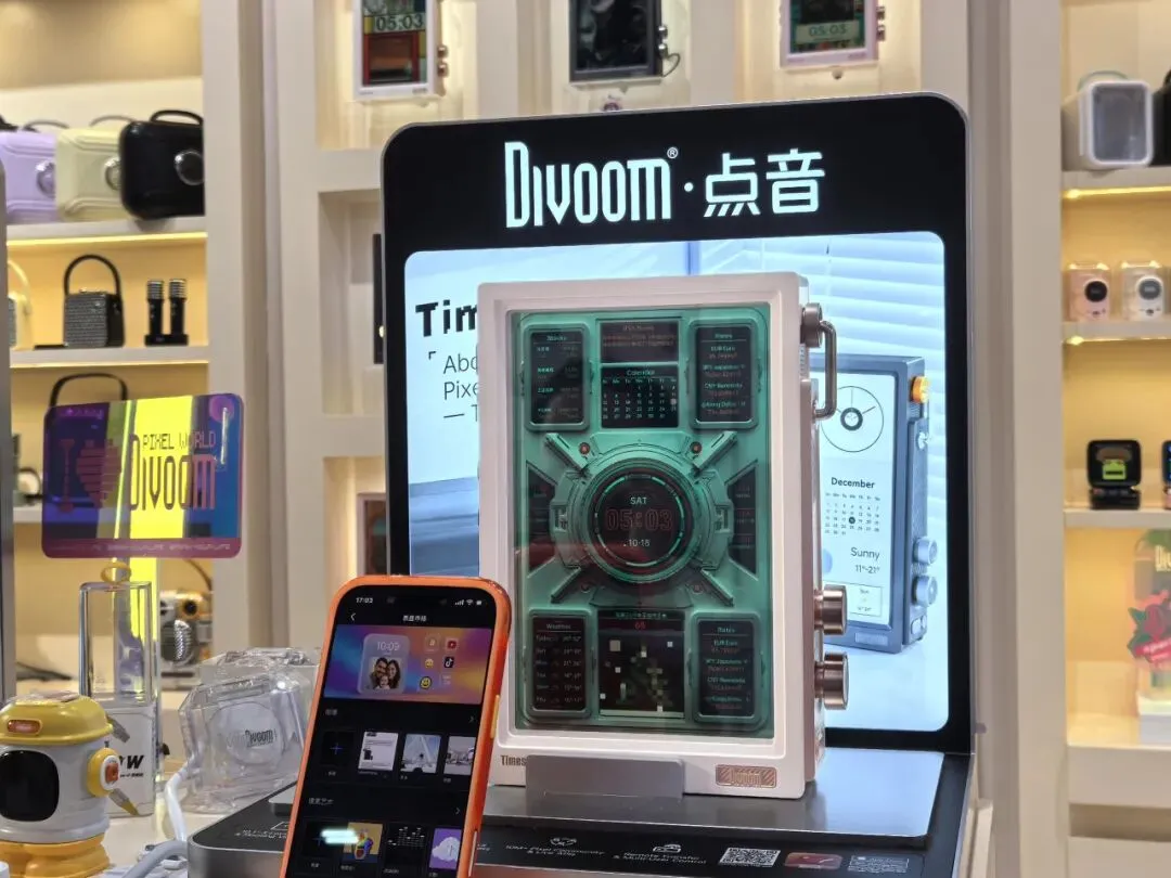 基于此,点音构建了从复古像素音箱、时光之门任意屏,到透明悬浮相框、像素快充头等丰富的产品生态,让全球用户的桌面真正成为"展示自我创意的舞台"。