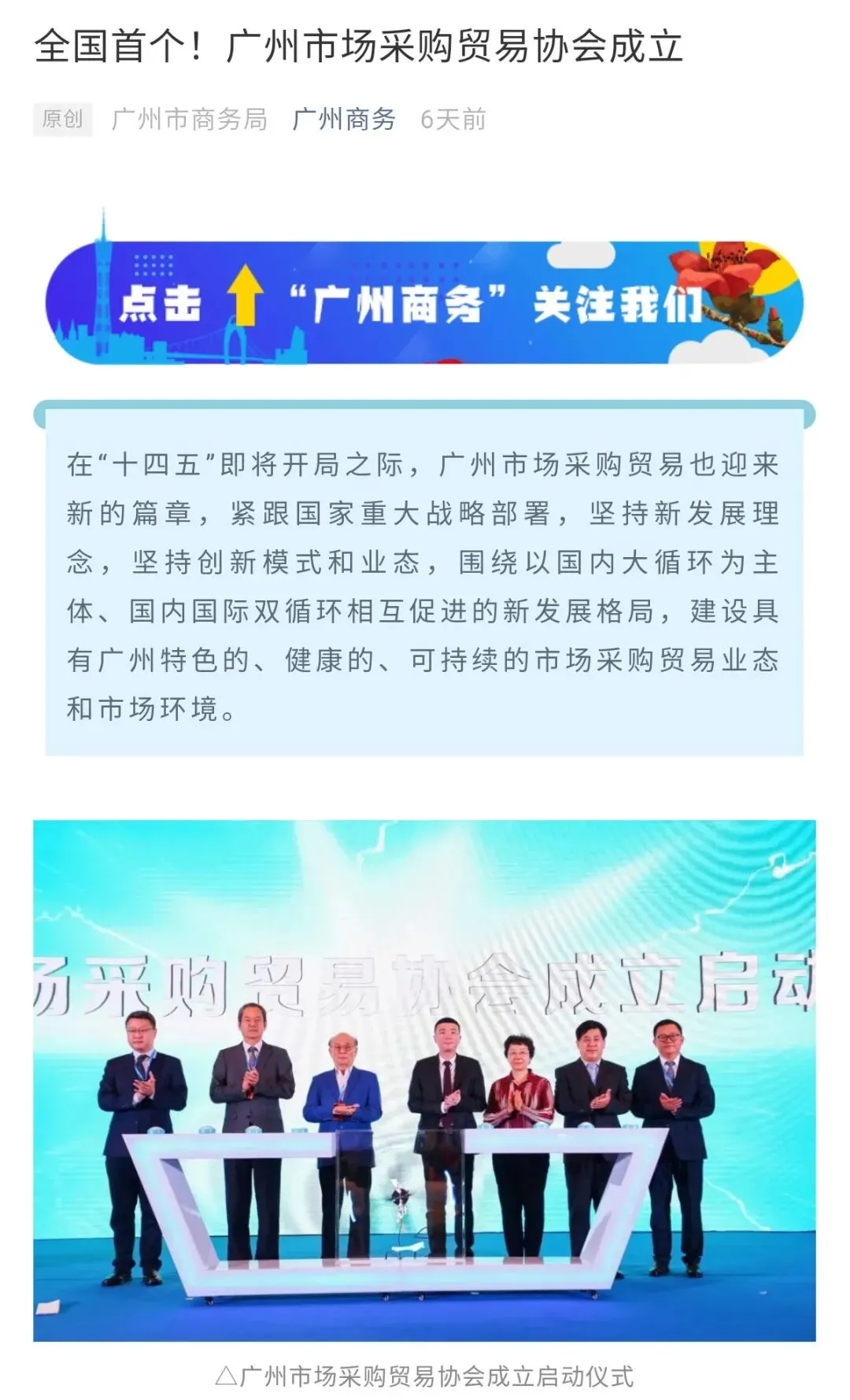 广州市场采购贸易协会的成立,成为全国首个以市场采购贸易业态为基础的协会组织,具有里程碑的意义,标志着广州围绕市场采购贸易而形成的外贸综合服务、金融、物流、科学技术生态初步建成。协会将积极拓展专业市场商户会员,发挥粤港澳大湾区核心引擎独特优势和对外开放先行先试优势,增强国际商贸中心功能,力求形成内外贸协同发展、城市更新与市场采购贸易协同发展的市场采购贸易“广州模式”。让我们一起为本次活动的圆满举办喝彩,并祝愿协会快速发展壮大,越来越精彩!