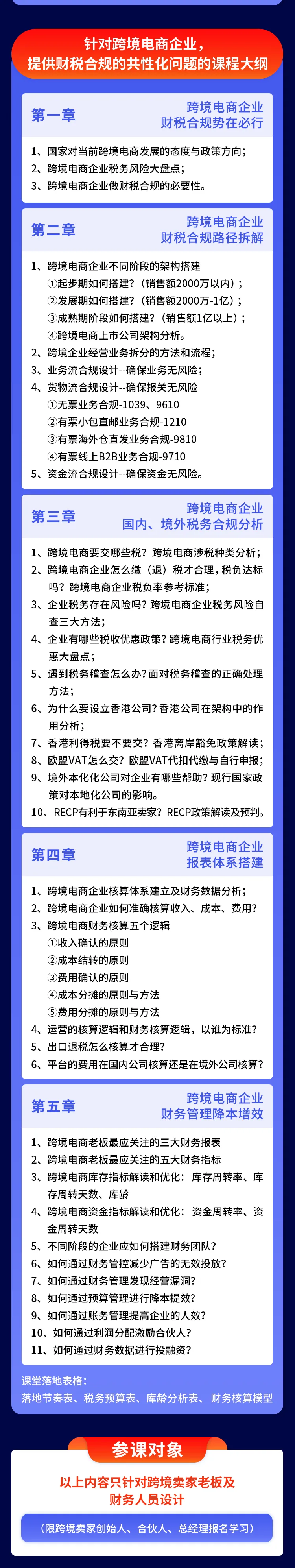 金税四期一启动,所有的企业都会逐步规范,只有合规的竞争环境,才能促进企业、行业由内到外持续稳健地发展。如果你也想系统性解决财税问题,可以扫下方二维码或左下角阅读原文报名跨境电商财税课程!1月11日~12日深圳龙岗开课~报名一定要抓紧时间哈!