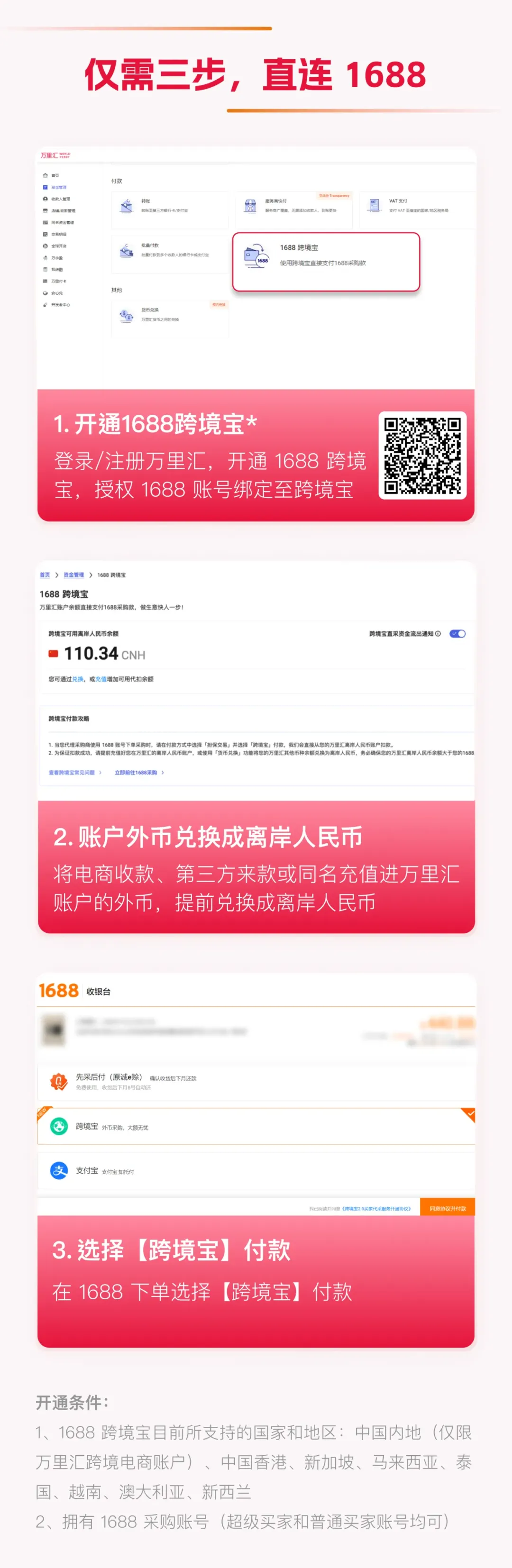 珠海市跨境商会优秀服务商——万里汇,向跨境卖家企业推出外币采购1688商家方案,阳光合规、安心灵活、高效便捷……卖家企业值得关注!