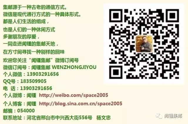 2006年在新浪开博客,十余年每天一篇博文 ,从无间断,文章微博同步。累计发表博文8000余篇,开办“闻锺集邮”微信公众号,入驻“今日头条”,每天更新。