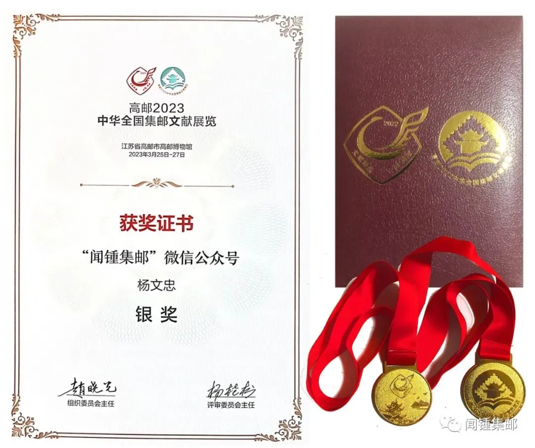 本公众号荣获了高邮2023中华全国集邮文献展览银奖