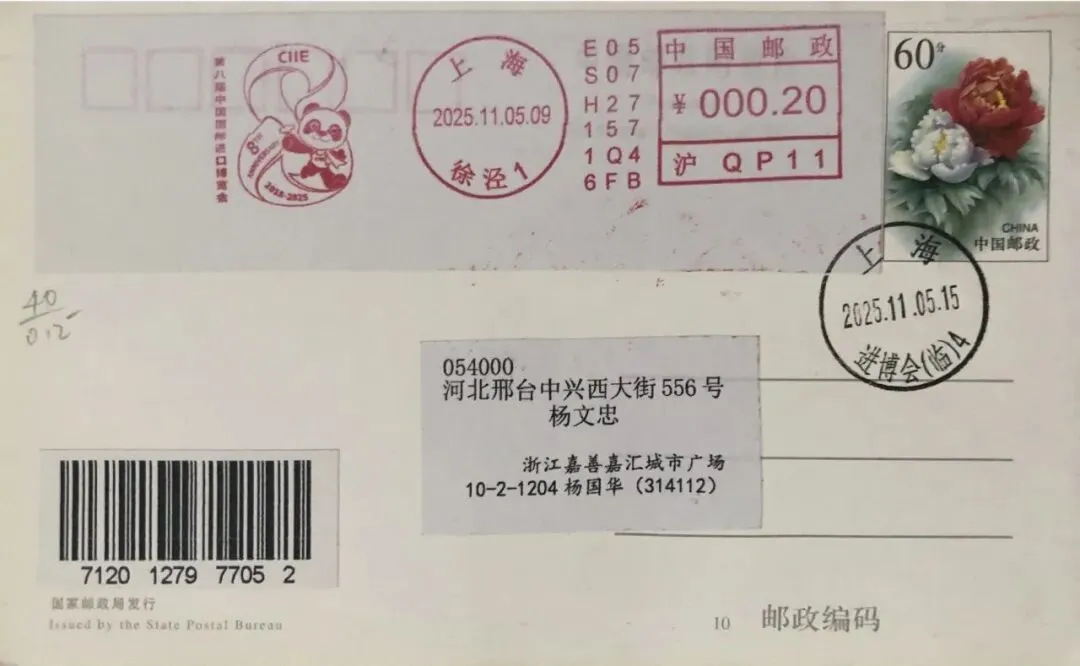 在这场举世瞩目的开放盛事中,邮政始终扮演着不可或缺的角色。作为连续八届服务进博会的“老伙伴”,邮政系统不仅承担了展会证件寄递、展品物流配送、现场邮政服务等核心任务,更以文化为纽带,通过邮资机宣传戳、纪念封、文创产品等独特载体,将进博会的时代意义与文化价值固化为可收藏、可传播的文化符号。其中,邮资机宣传戳作为邮政文化的重要组成部分,既是邮件寄递的资费凭证,更是记录重大事件、传承时代记忆的“微型纪念碑”,在第八届进博会上焕发出别样的光彩。