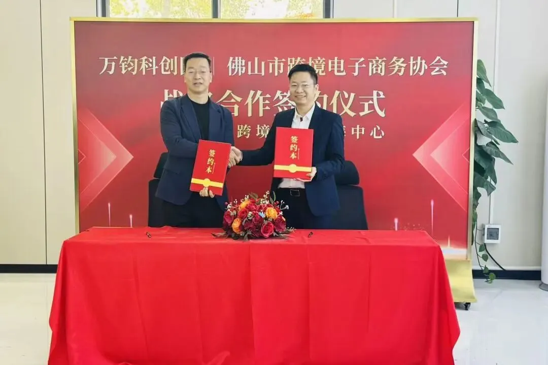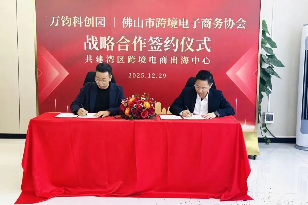 12月29日,佛山跨境电子商务协会与万钧科创园共建湾区跨境电商出海中心签约活动,在佛山市南海区桂城街道平海路万钧科创园顺利举办。万钧科创园招商总监李卓凡主持签约仪式,佛山跨境电子商务协会创会会长兼秘书长黄永坤、万钧科创园执行董事兼总经理邓英钿及部分会员单位、协会合作机构共同出席并见证签约仪式,签署合作协议标志着湾区分跨境电商出海中心建设正式落地启动,为佛山乃至湾区跨境电商企业扬帆出海搭建优质平台。