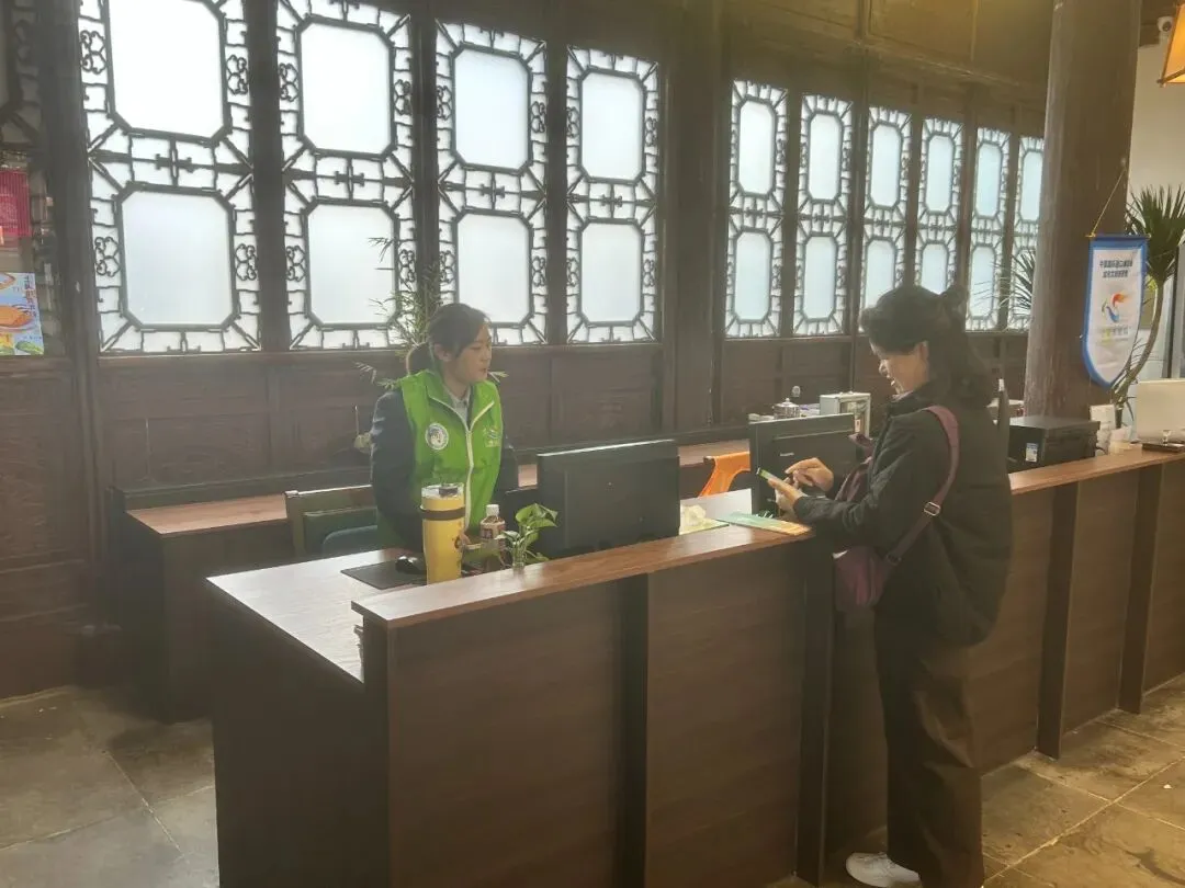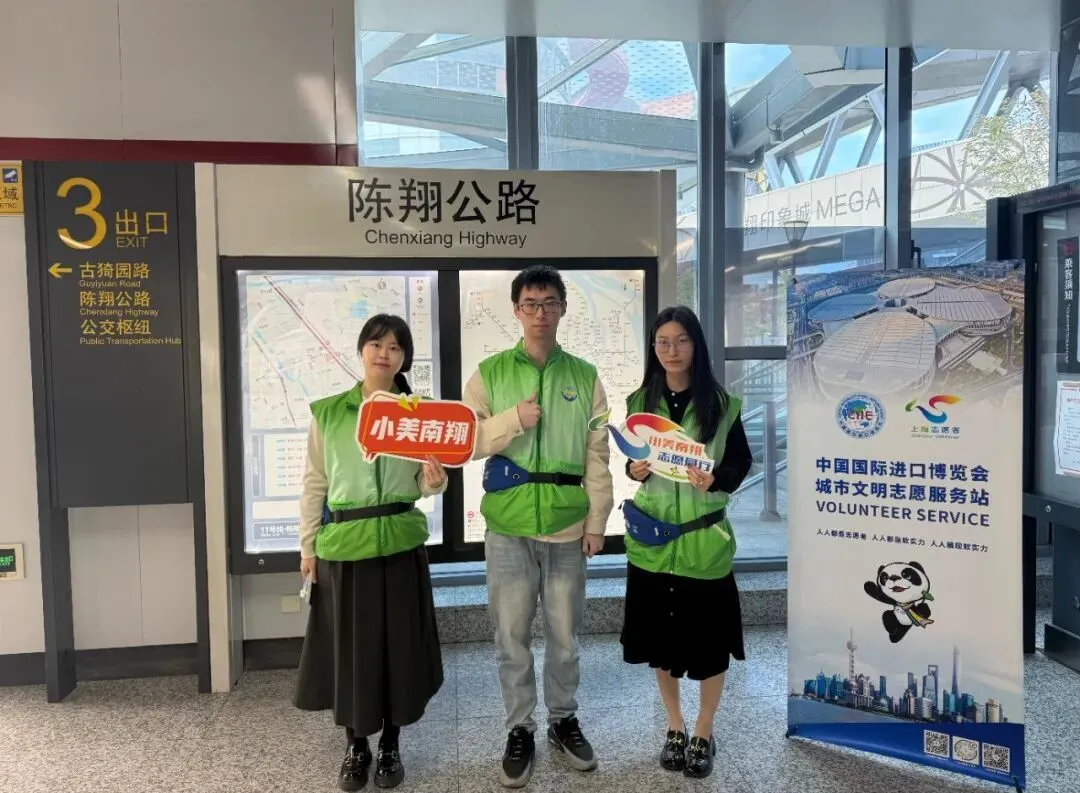 位于南翔古镇的文明志愿服务站也同样忙碌。志愿者们将“进博温度”从交通枢纽延伸至景点景区,为往来游客提供便民咨询、路线指引、应急处置等志愿服务。