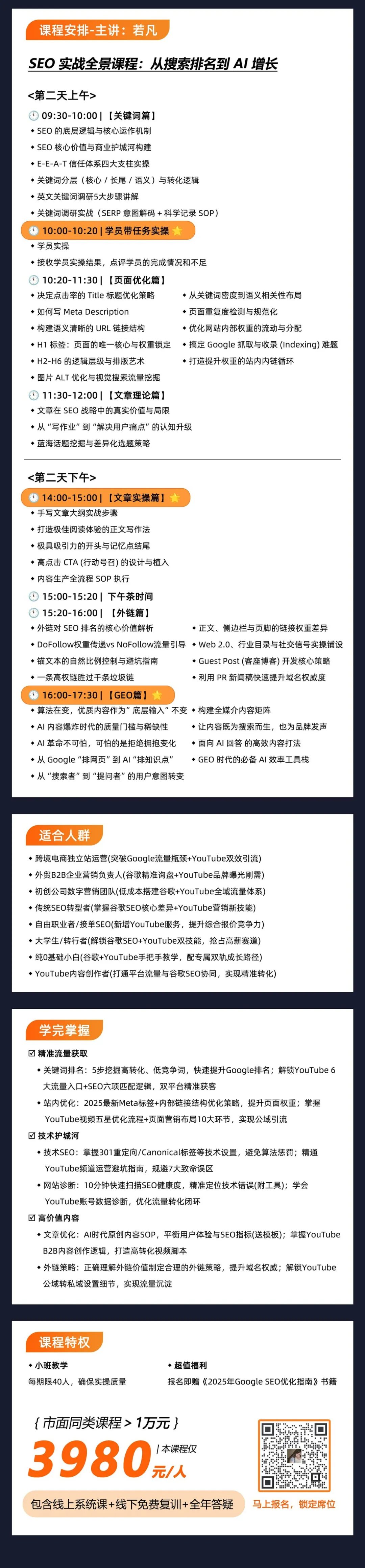 如果你正被投广告不赚钱、做站外没效果的痛点困扰,想要搭建长期稳定的站外流量体系,12 月 27-28 日深圳线下【Google SEO & YouTube 站外引流实战训练营】或许是你的破局契机。