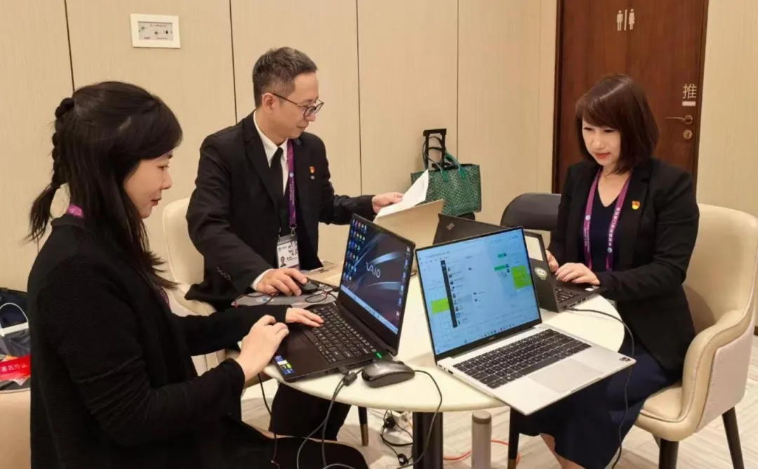 开幕式前后两天为接待峰值期,团队曾在半小时内同步完成30 至 40 家央企团组的迎送对接,展现了惊人的统筹协调能力,完成了峰值保障的“极限挑战 ”。