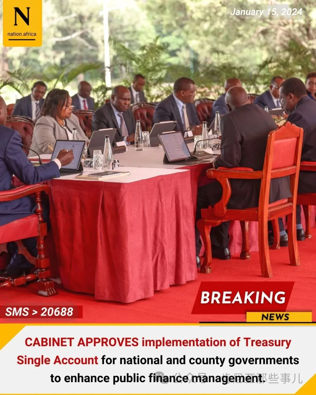 1月15日的肯尼亚内阁会议,还做出决议:肯尼亚中央政府(财政部)和47个郡(County)级政府实施国库单一账户(TSA),以加强肯尼亚各级政府的公共财政管理。