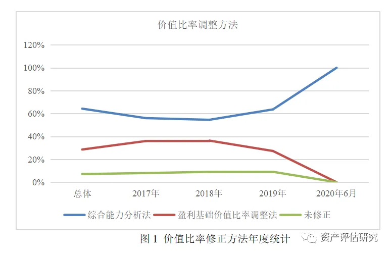 从样本总体来看,运用综合能力分析法来修正价值比率的样本数量占比较高(64%),盈利基础价值比率调整法也有所应用(29%),未对价值比率进行修正的样本较少(7%)。