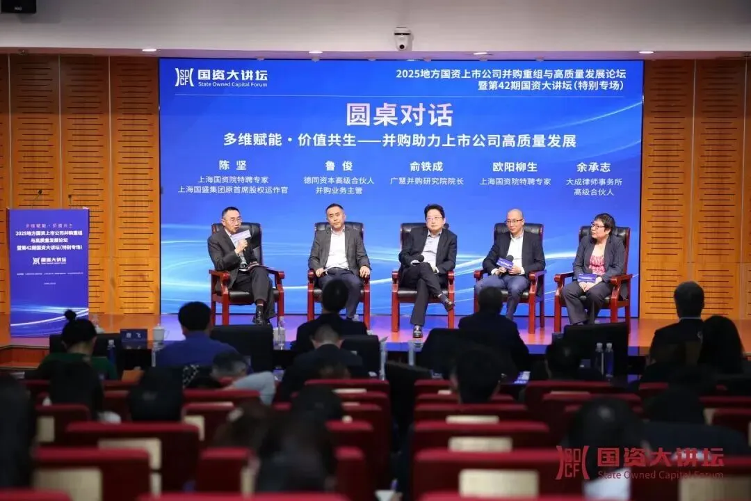 在以“多维赋能 价值共生——并购助力上市公司高质量发展”为主题的圆桌对话环节,由上海国资院特聘专家、上海国盛集团原首席股权运作官陈坚主持,德同资本高级合伙人、并购业务主管鲁俊,广慧并购研究院院长俞铁成,上海国资院特聘专家欧阳柳生,大成律师事务所高级合伙人余承志四位嘉宾,围绕地方国资上市公司如何通过并购重组培育新质生产力、助力高质量发展等话题进行了深入交流探讨。