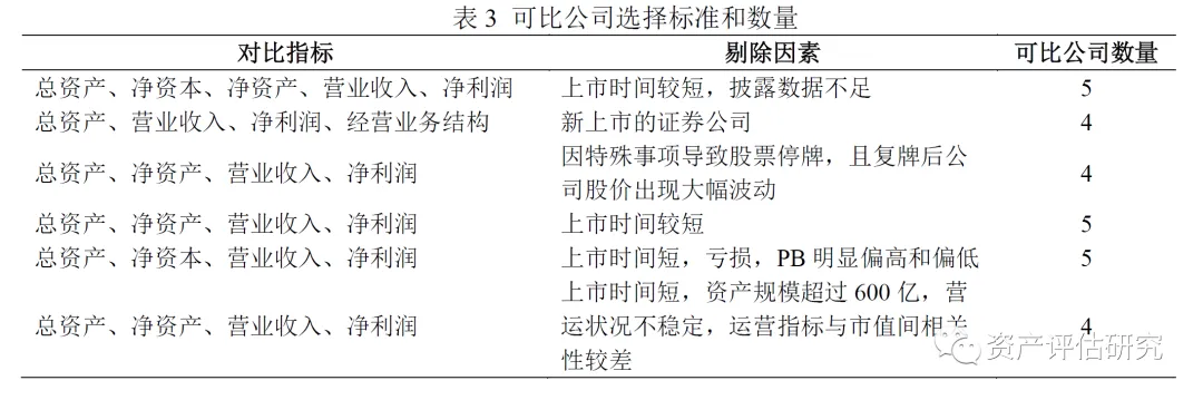 通过上述对比和筛选,6份评估报告中选择以4家和5家上市公司作为可比公司的报告数量相等,均为3份。