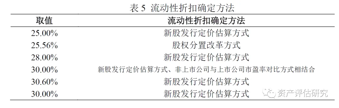 六、流动性折扣确定