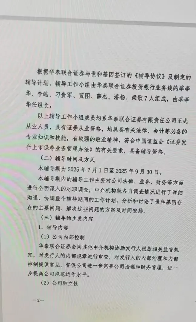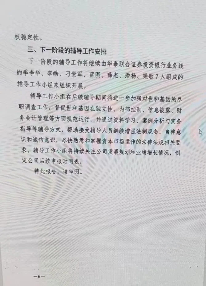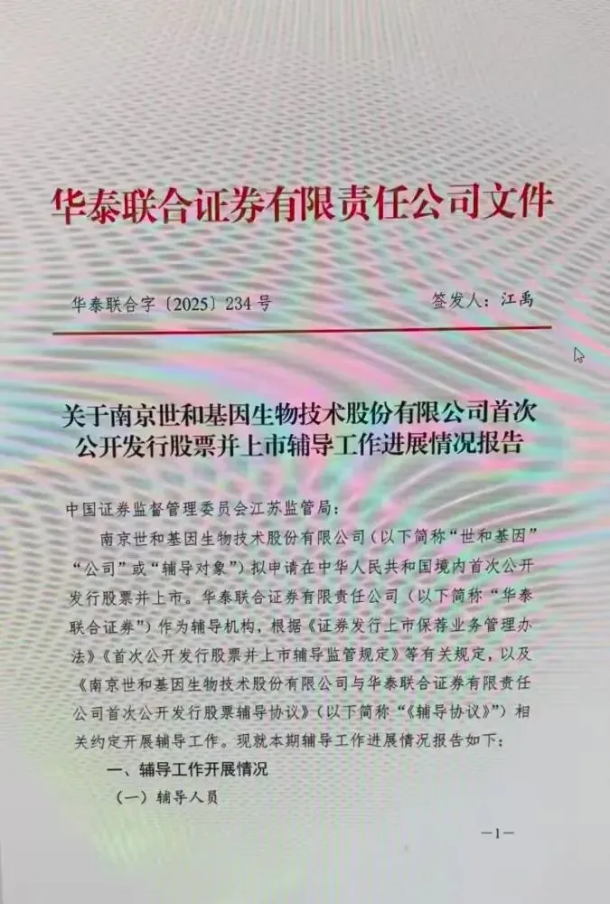 近日,阅读华泰联合证券有限责任公司上报的《关于南京世和基因生物技术股份有限公司首次公开发行股票并上市辅导工作情况报告》(第三页)发现,北陆药业重要参股公司南京世和基因IPO取得重大进展:辅导机构协同公司在上海证券交易所现场完成申报前咨询沟通。