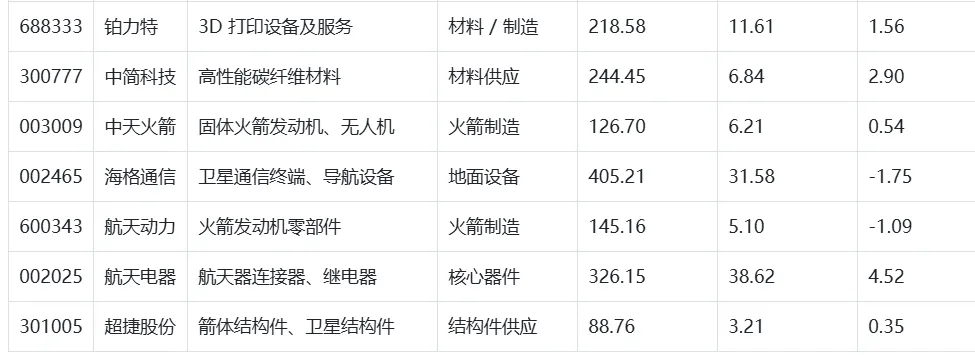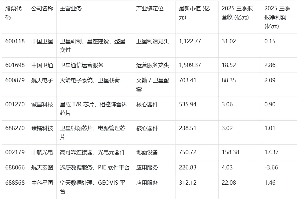 公司在卫星总装集成测试 (AIT) 领域具备年产能 500 颗的能力,已获得千帆星座 108 颗卫星订单。2025 年前三季度营收 8.76 亿元,同比增长 12.34%;净利润 0.65 亿元,同比增长 18.21%。