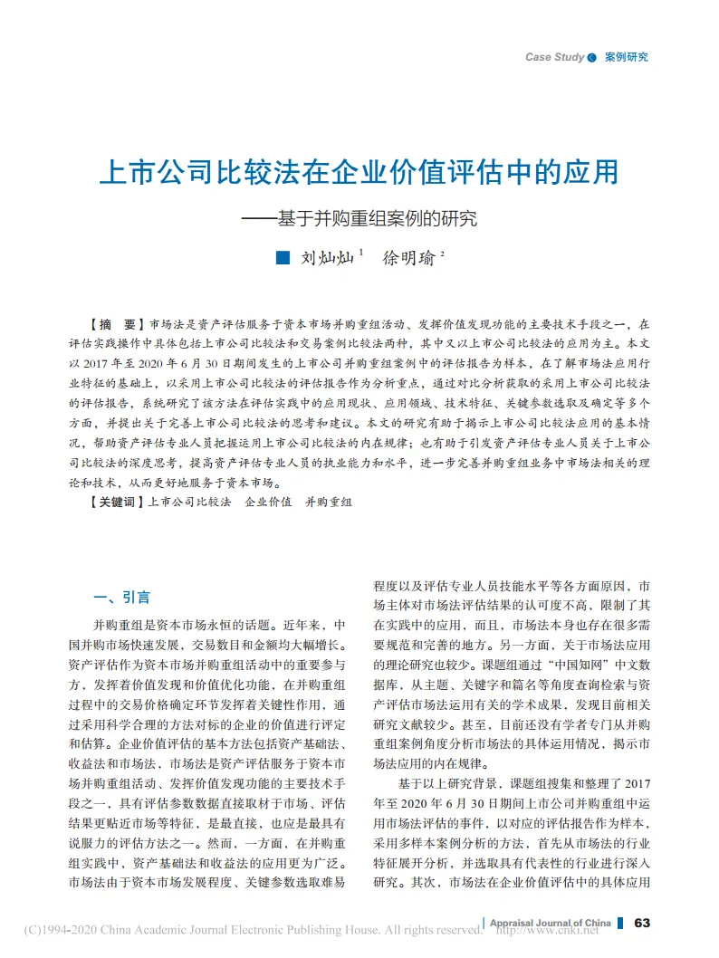 上市公司比较法在企业价值评估中的应用——基于并购重组案例的研究