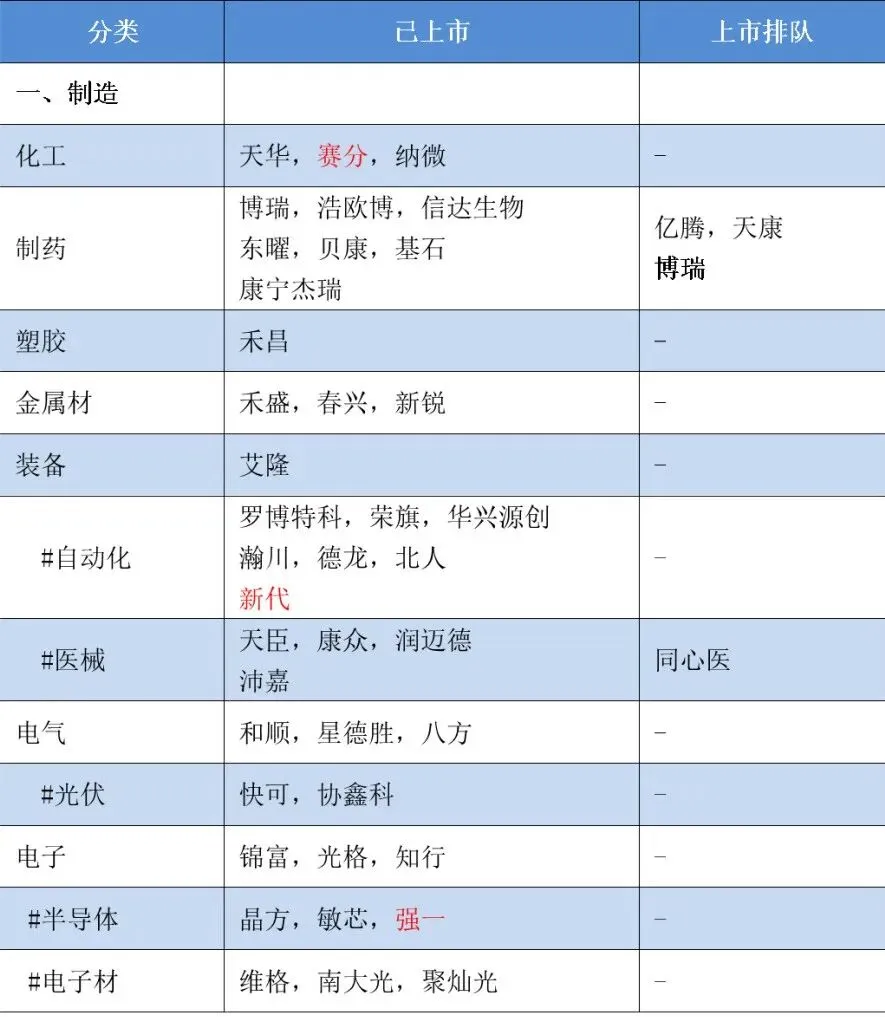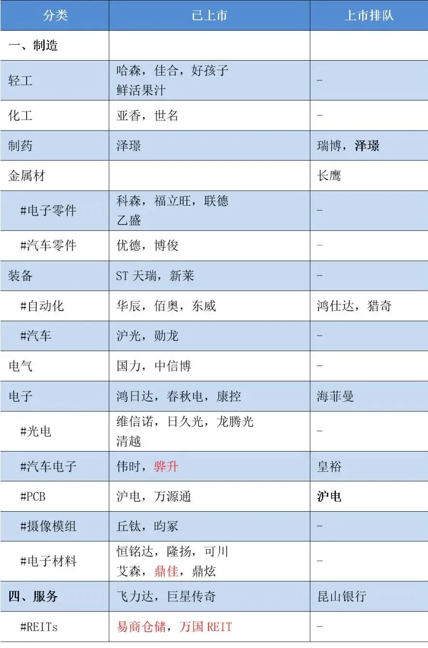 1)标红为25年新上市、加粗为双重上市,下同
