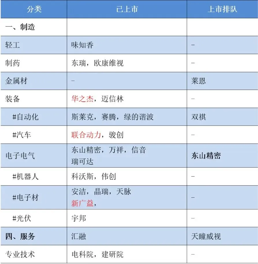 后备梯队:上市排队和辅导中各1家;
