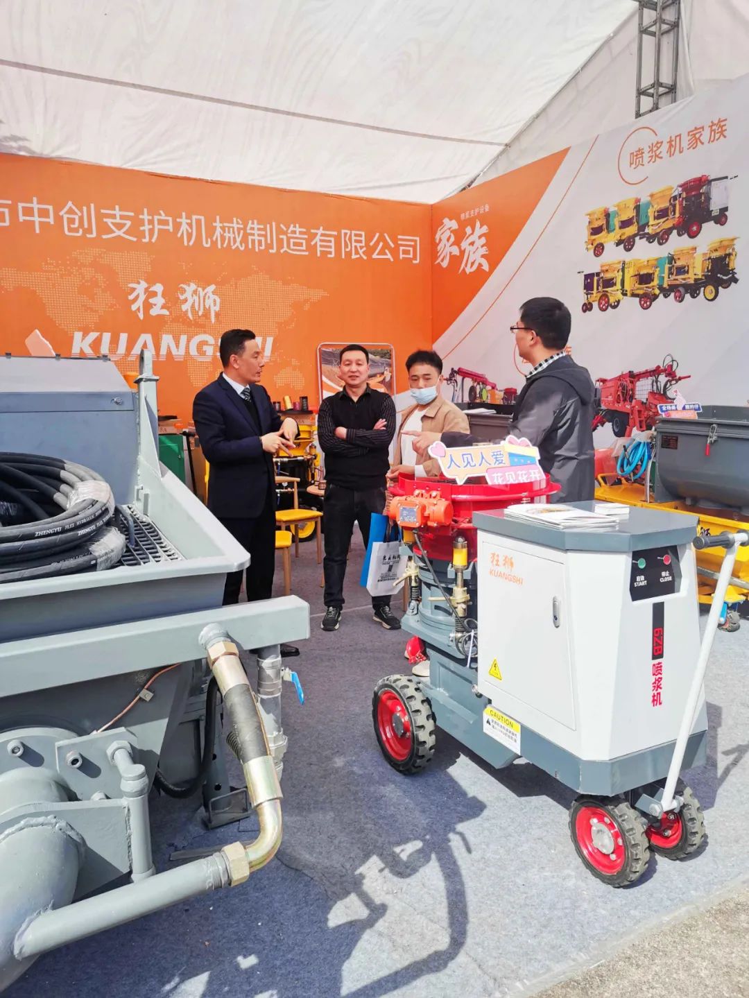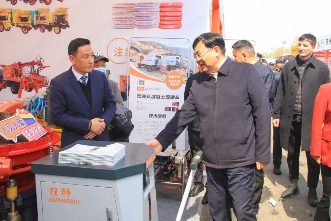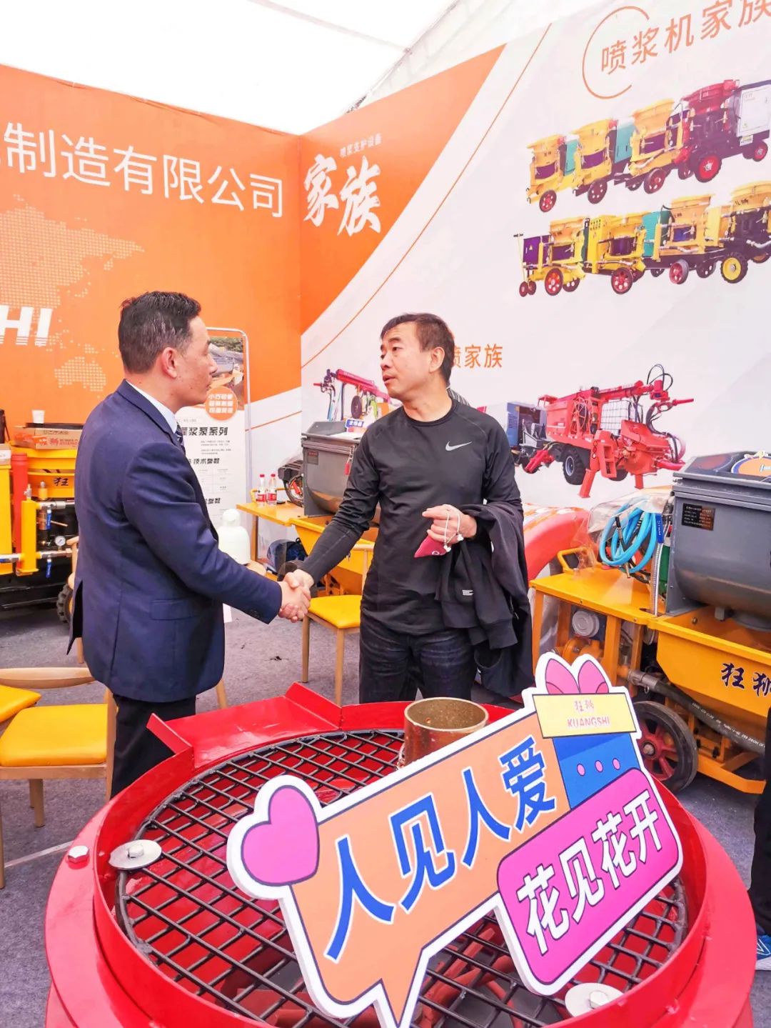 李总给长葛市市委书记介绍狂狮红狮子喷浆机的特点