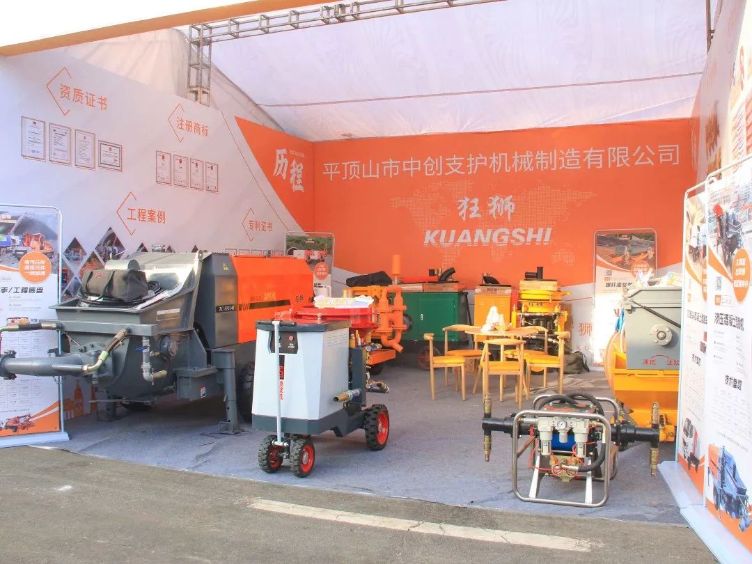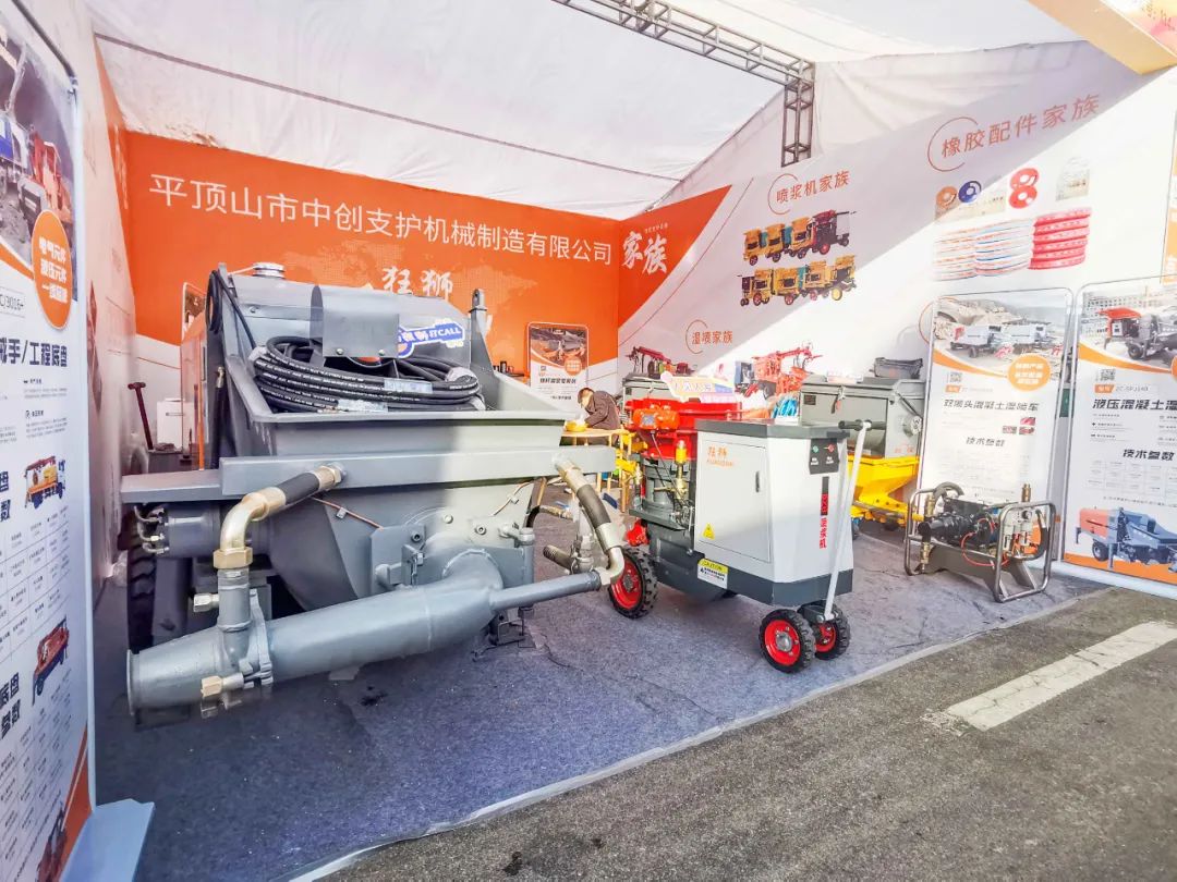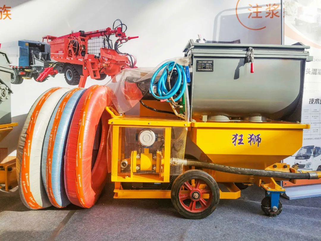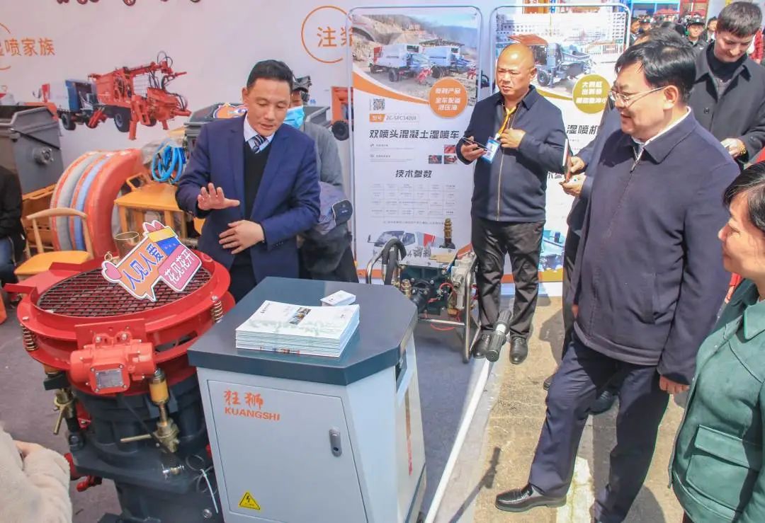 李总给长葛市市委书记介绍狂狮红狮子喷浆机的特点
